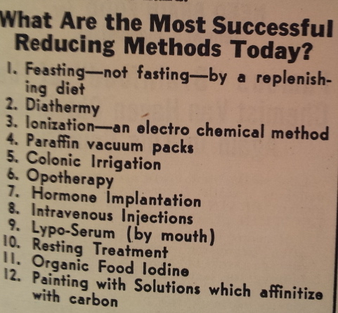 I purchased this magazine because "iodine baths" was listed as one of the subjects. There are a couple of photos of iodine beauty treatments in an article entitled "A Woman's Heart Never Wrinkles", ...but... the article is strange for a few reasons., the first being that with the exception of the subject lines below the pictures, the word "iodine" is not to be found in the article. The article consists of wisdom gleaned from a mysterious Professor Bela____ from Budapest(how exotic!).