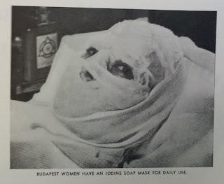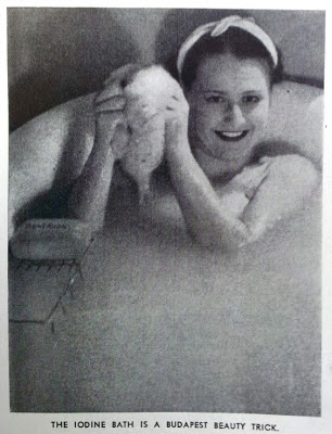 If we are to take the photos accompanying the article as a hint then bathing in iodine and swathing the face in an iodine mask were also important components of the Budapest Beauty Ritual.
