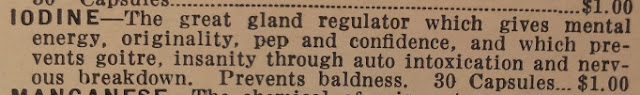 This is a valuable piece of iodine history, in my opinion. Please note in the clips below, the "irradiated" iodine. Radiation was, at that time, one of the new miracles of medicine. The ads vary between the irradiated iodine supplements and iodine from the sea. At least the health-giving properties of iodine were known at this time!